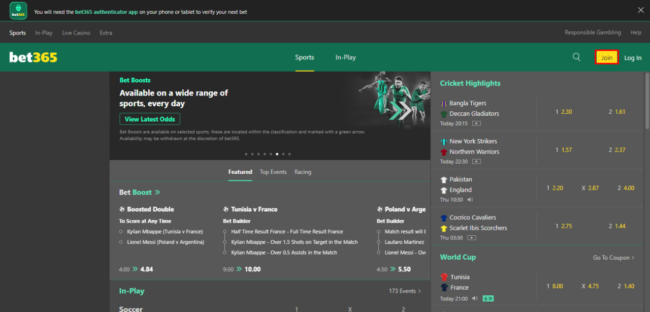Go to the Bet365 India website and click on the “Join” button located on the right side of the homepage. This will take you to the registration form.