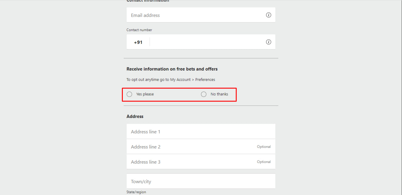 Provide a valid email address, as you’ll need it to verify your new Bet365 India account via an email link, along with a valid phone number and home address.