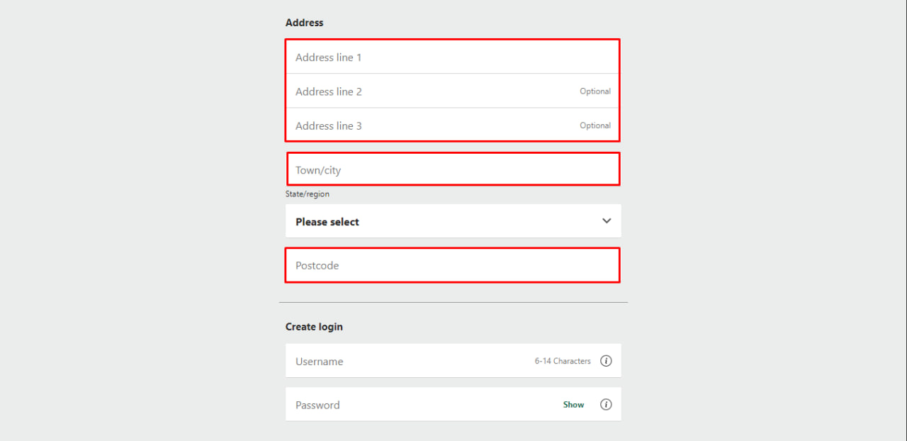 Enter your residential address, including your region and postal code. This information is necessary for verification and account security.
