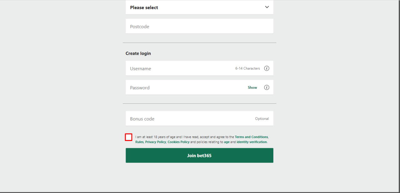 Read and agree to the terms and conditions by ticking the relevant box. This confirms that you accept Bet365 India’s policies and rules.